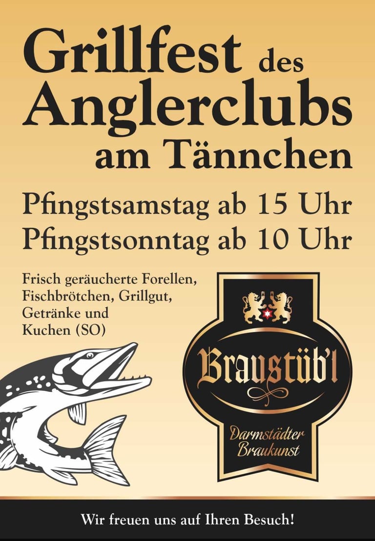 Unser Grillfest der Angler am Braunshardter Tännchen findet am 23.05.2026-24.05.2026 statt. Wir freuen uns jetzt schon auf Euch, an diesem Pfingstwochenende.